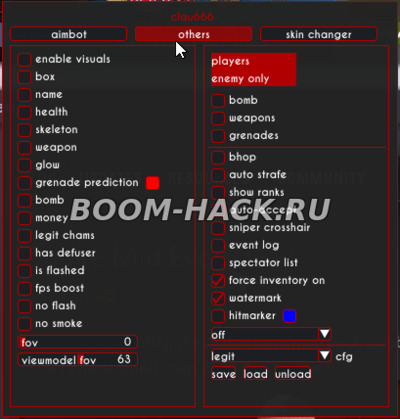 | ЧИТ ДЛЯ CSGO CLAU666 AIMBOT,LEGIT,WALLHACK,SKINCHANGER | ||